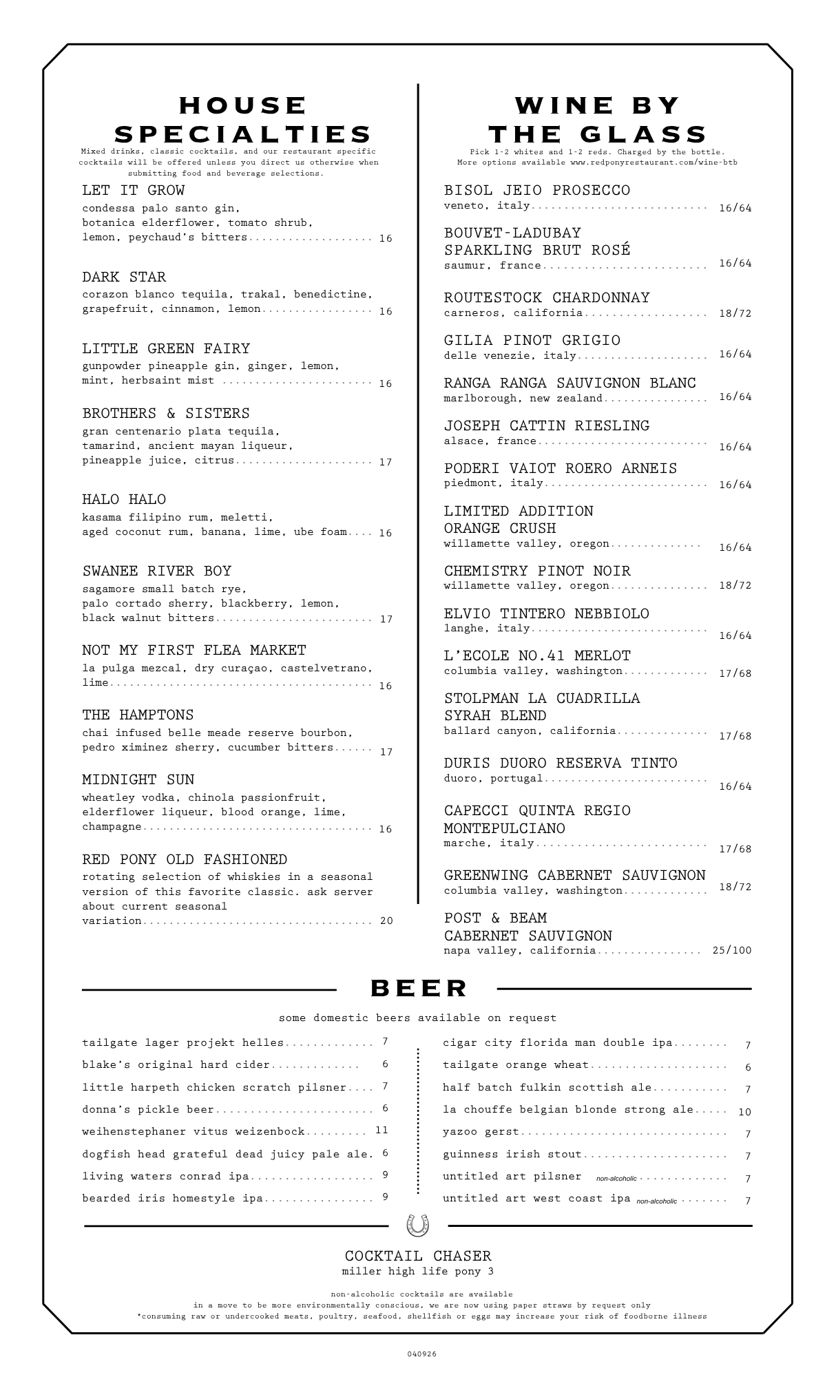 Groups with 17 or more guests are required to offer a limited menu. When the seasonal menu has been determined, the Large Party Coordinator will email you an updated link with menu options and ask for you to reply to her email with a list of your selections.